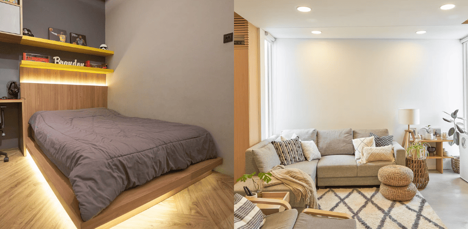 For example, in living or dining areas, you can combine a pendant light, track lighting, and strip lights, just like in the illustration below.